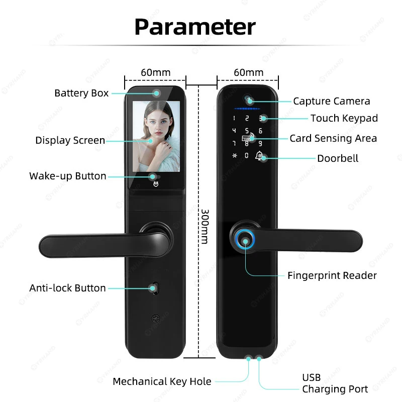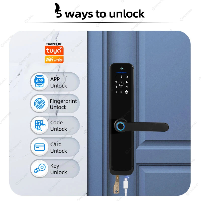 استمتع بخيارات فتح ذكية: بصمة الإصبع البيومترية 👆، كلمة المرور 🔢، البطاقة الذكية 💳، التعرف على الوجه 😊، والمفتاح التقليدي 🔑 – لتجربة مريحة وآمنة.